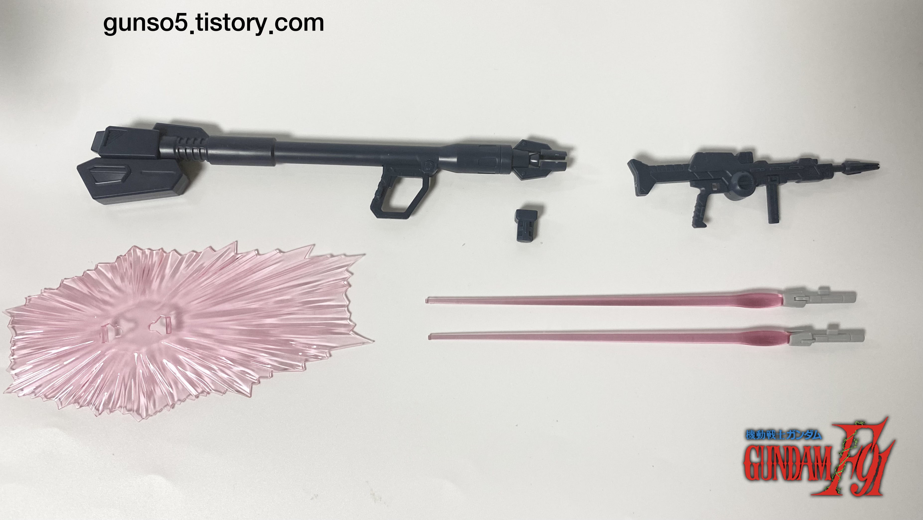 빔 플래그, 빔 사벨 2자루, 빔 라이플, 빔 런처, 빔 실드. 일단 작중 등장한 건 전부 넣어줬네요.