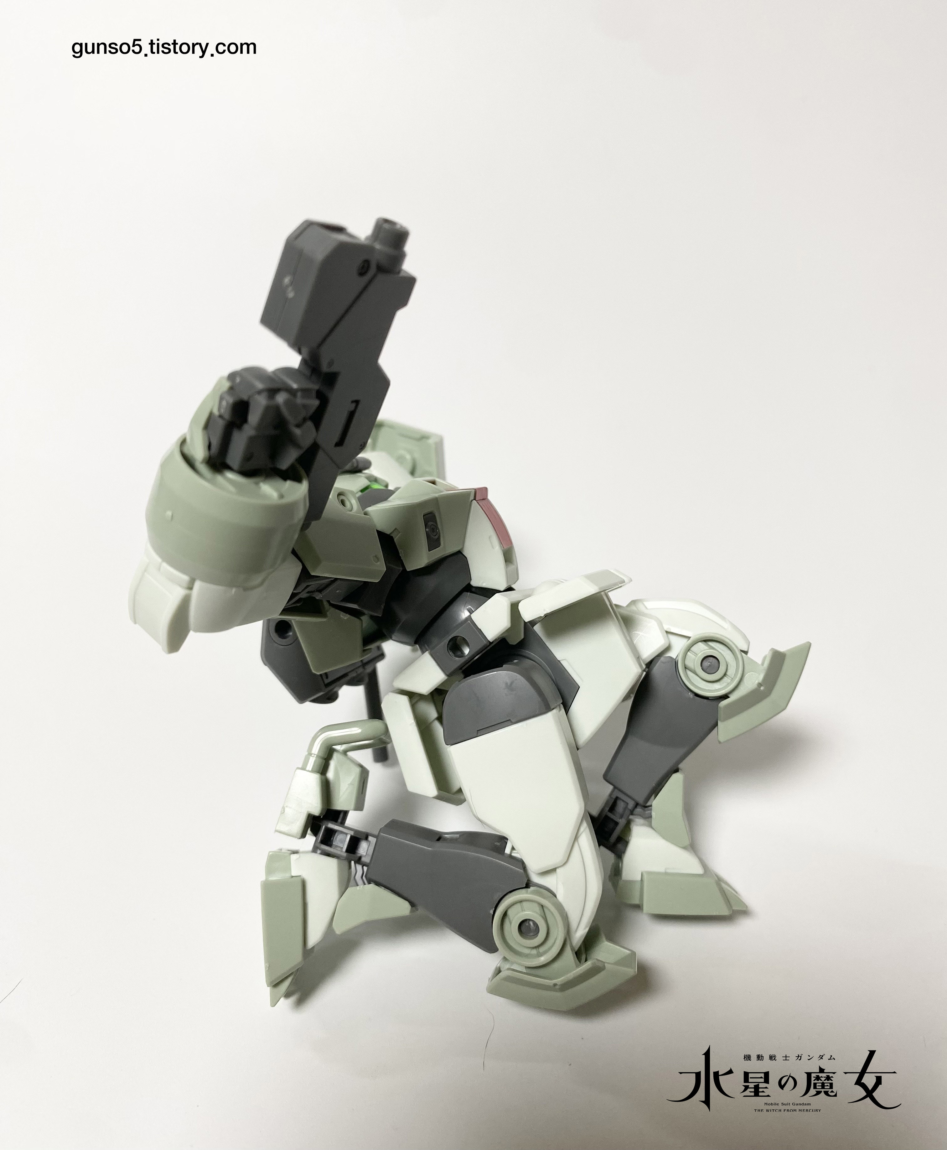 애니메이션 <기동전사 건담: 수성의 마녀>에 등장하는 기체인 데미 트레이너입니다. 2022년 11월에 발매한 데미 트레이너 츄츄 전용기를 베이스로 색상도 변경되고 양산형에 맞는 신규 조형이 추가되었습니다.