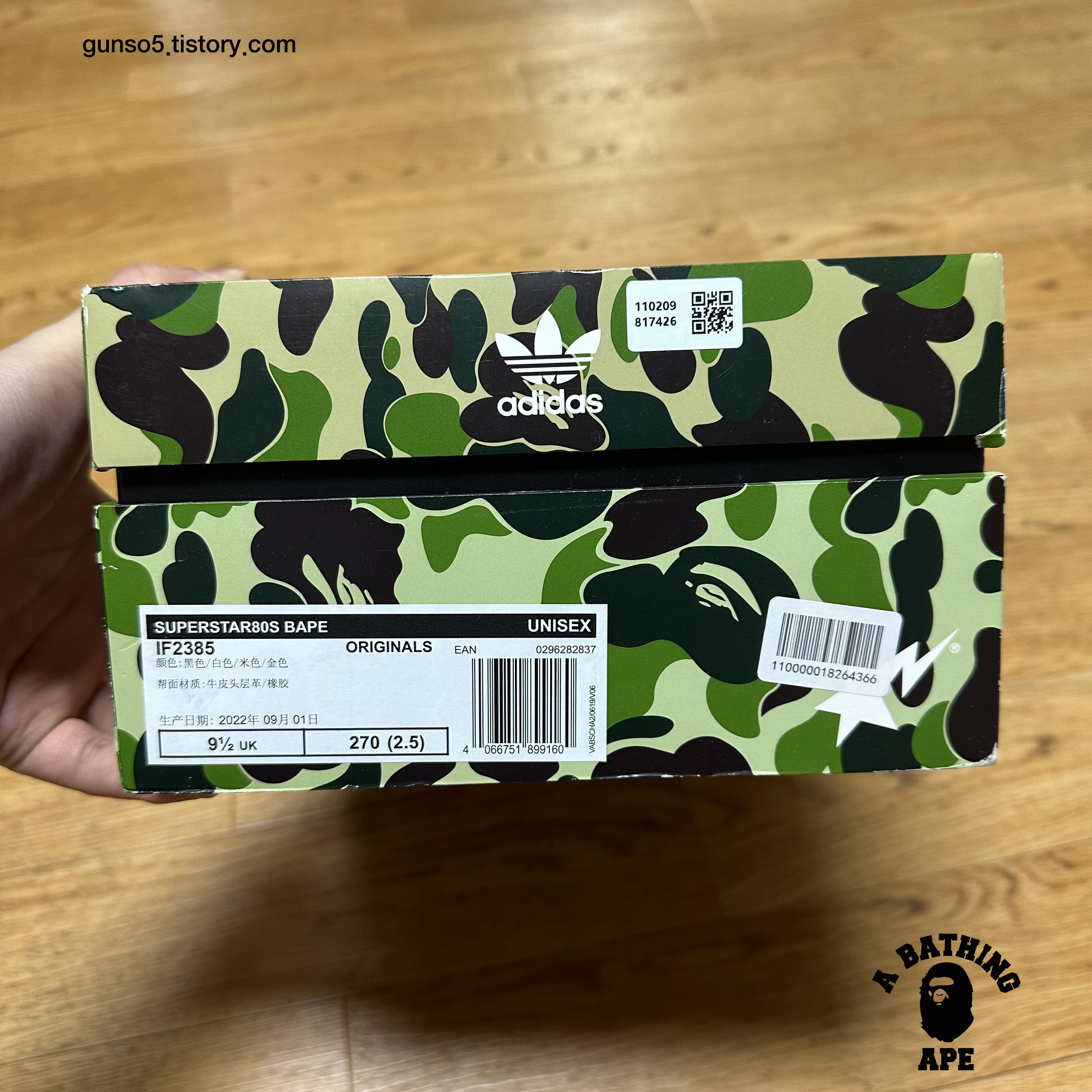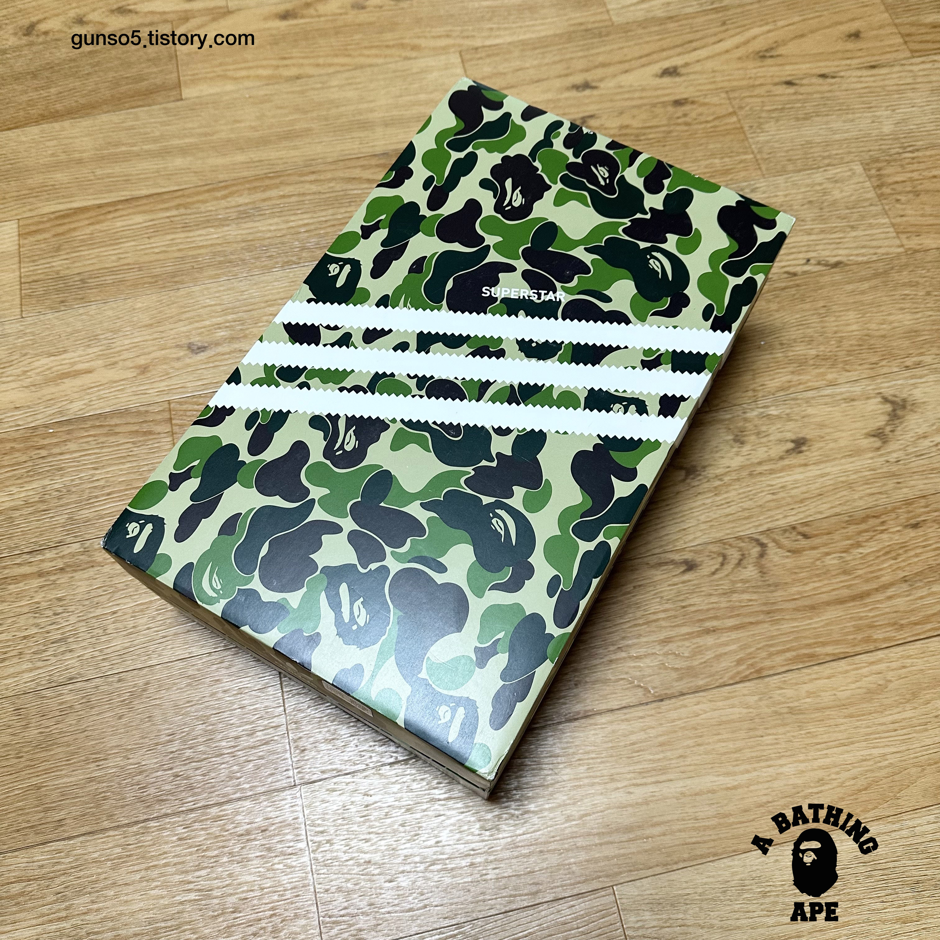 아디다스와 베이프의 협업 스니커 중 하나인 슈퍼스타 80s입니다. 화이트가 메인인 컬러와 베이프를 상징하는 카모 패턴도 있습니다. 베이프(A BATHING APE) 는 현재는 휴먼메이드(Human Made)의 수장인 일본의 패션 디자이너 니고가 1993년 설립한 브랜드입니다. 나이키에 슈프림이 있다면 아디다스에는 베이프가 있다고 할 수 있는 관계죠.