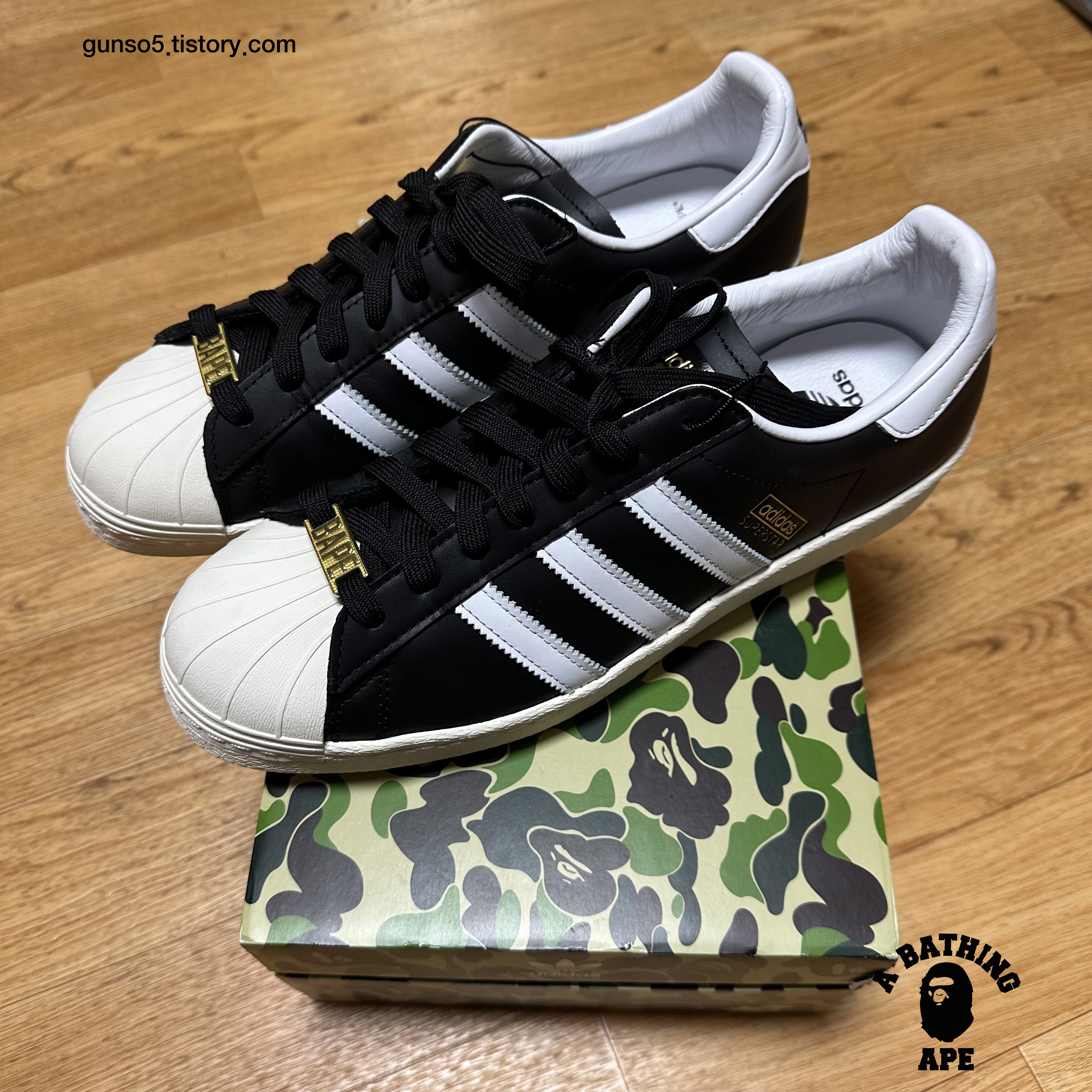 아디다스 x 베이프 슈퍼스타 80s 코어 블랙 오프 화이트